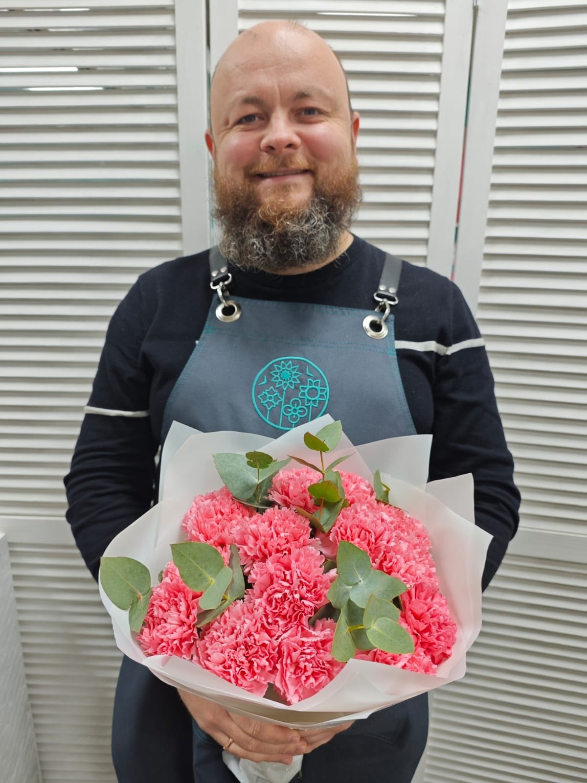 Букет из 15 нежных диантусов с веточками эвкалипта